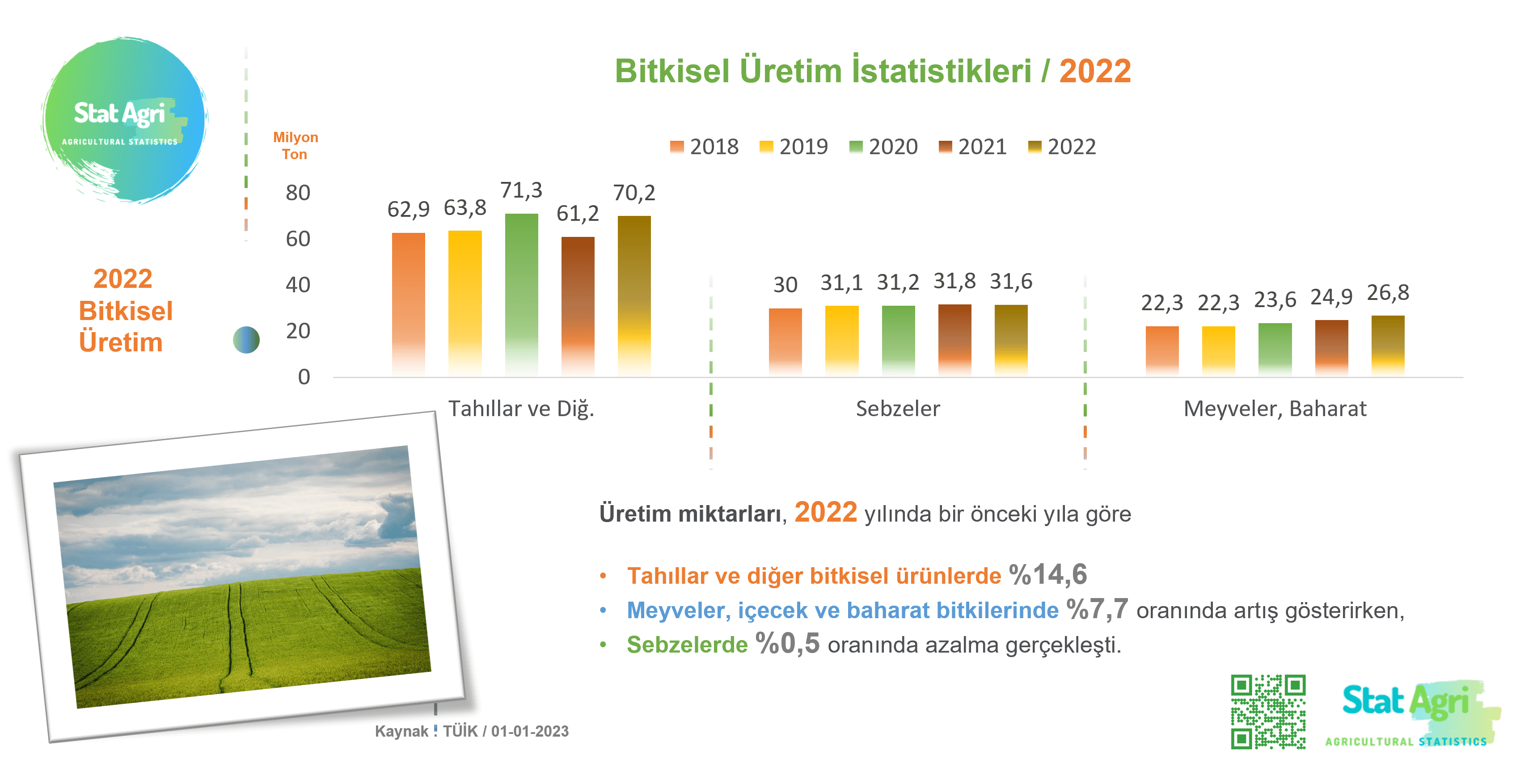 Tahıl ürünleri üretim miktarları 2022 yılında bir önceki yıla göre %21,3 oranında artarak yaklaşık 38,7 milyon ton olarak gerçekleşti.